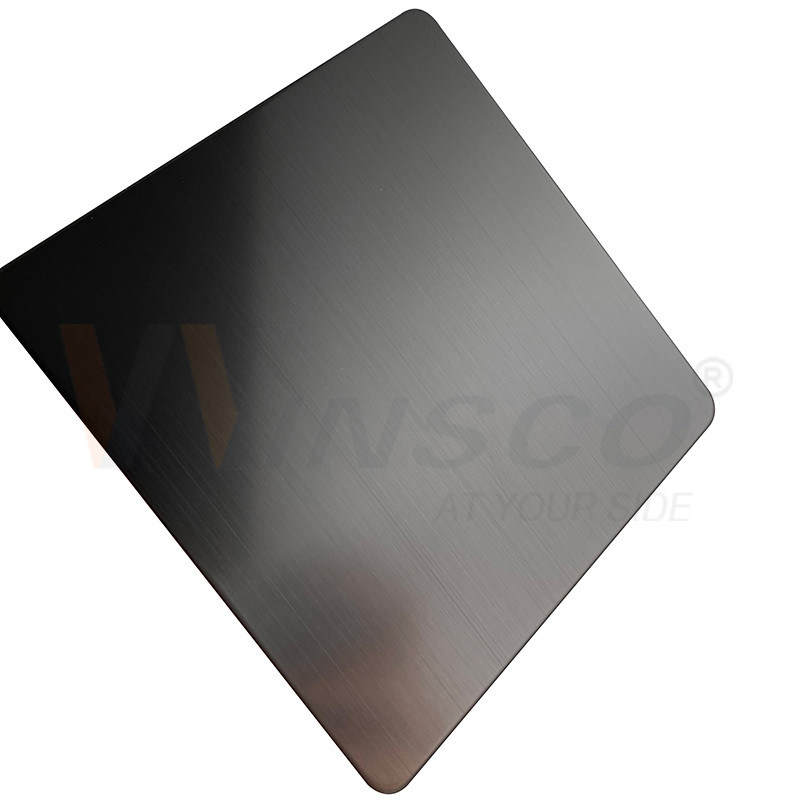 サテンブラックチタンヘアライン仕上げステンレス鋼板は、モダンでスタイリッシュな
